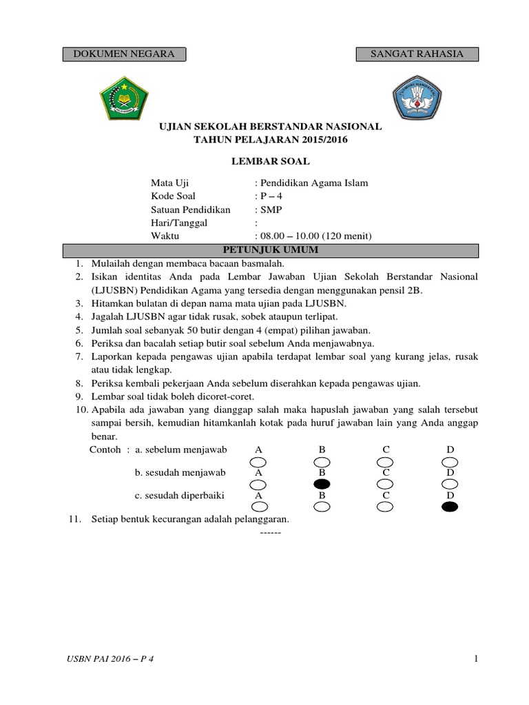 Soal usbn pai sma smk k13 2018 p 2 susulan final. Soal penilaian tengah semester (pts) 2019. Latihan soal dan kunci jawaban usbn pai smp 2021 k13 pdf, download demikian latihan soal dan kunci jawaban usbn pai smp 2021 kurikulum 2013 yang sudah admin bagikan. Berikut contoh soal latihan usbn pai smp tahun 2019 kurikulum 2006 (ktsp). Jawaban soal usbn agama 2017 kumpulan contoh surat dan soal terlengkap contoh kumpulan