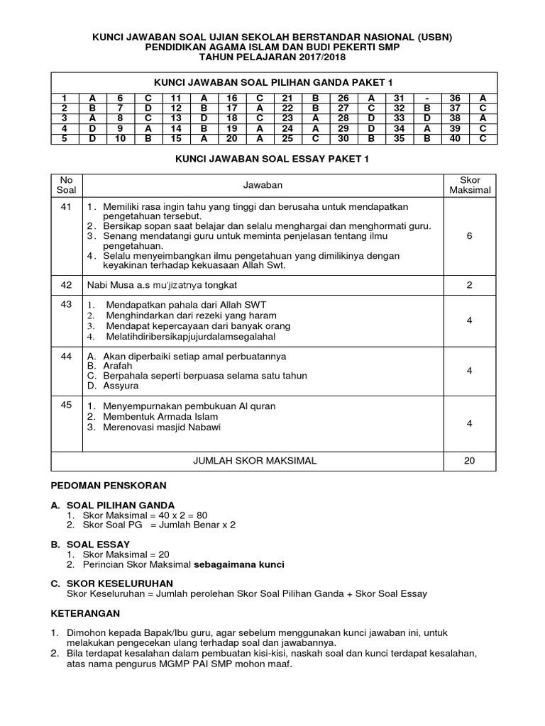 Soal penilaian tengah semester (pts) 2019. Soal dan kunci jawaban pai smp. Download soal usbn pai smp 2018 dan kunci jawaban lengkap naskah asli dokumen naskah asli soal usbn pai 2018 yang admin bagikan saya dapatkan mencakup 5 paket soal. Latihan soal dan kunci jawaban usbn pai smp 2020 k13. Soal pkn ini terdiri dari soal pilihan ganda dan soal esai, yang sudah dilengkapi dengan kunci ….
